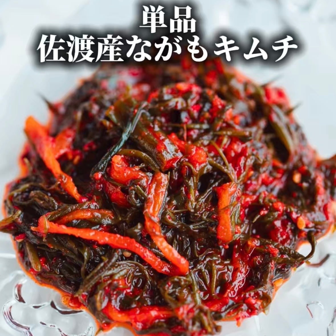 原材料/ながも(佐渡産)、大根(国産)、赤とうがらし粉(韓国産)、いわしのエキス、にんにく、しょうが、にら、ねぎ、砂糖、ごま、調味料(アミノ酸)