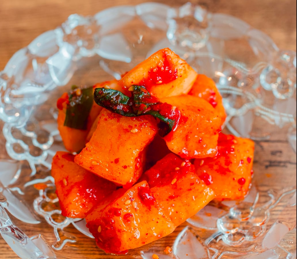 原材料/大根(国産)、赤とうがらし粉(韓国産)、いわしのエキス、にんにく、しょうが、にら、ねぎ、砂糖、ごま、/調味料(アミノ酸)